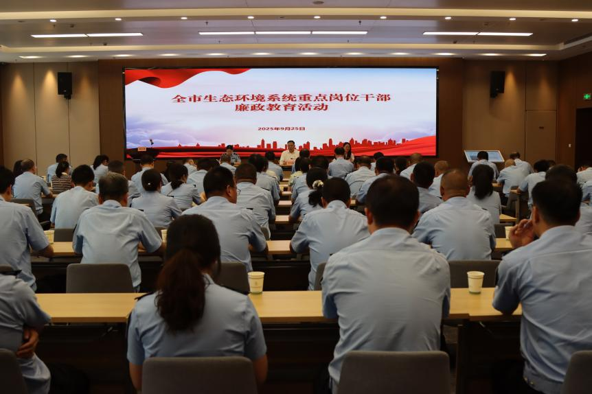 随后播放的廉政警示教育片,讲述了个别干部因“小节失守”逐步滑向“违纪违法”的全过程,直观展现了腐败对事业、家庭、个人的毁灭性打击,让在场干部深刻认识到“生态环保无小事,廉洁自律是底线”。
