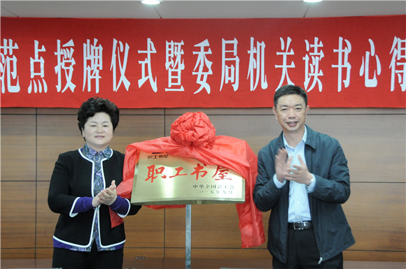 市总工会主席葛玉琴与市纪委副书记、监察局局长陈勇共同为书屋揭牌